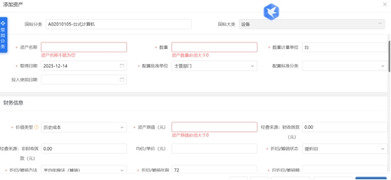 资产名称需与发票、资产登记表上名称保持一致。